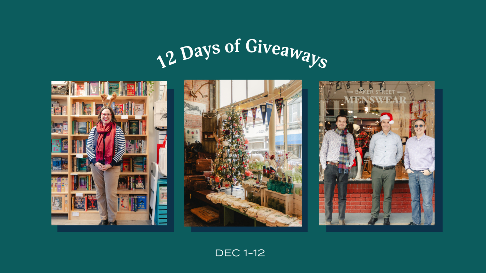 The 12 Days of Christmas Giveaway is part of our ongoing Think Local First initiative. Every dollar spent at a local business supports jobs, strengthens community connections, and helps keep our downtown thriving during the busiest season of the year.