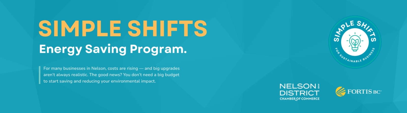 Introducing the Simple Shifts Program, a new Nelson & District Chamber of Commerce initiative designed with input from our local business community. This program helps small businesses lower energy costs and reduce environmental impact through easy-to-implement actions and simple daily habit changes.